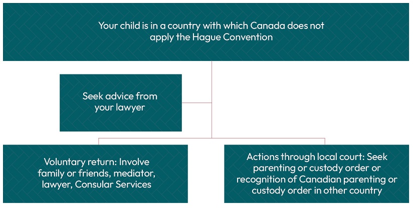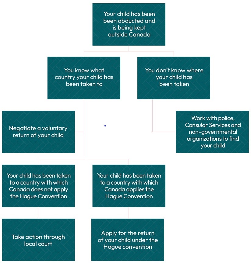 Child abduction is a criminal offence in Canada, but when a parent abducts a child to another country, they are subject to the laws and procedures of the country they are in, which may be very different from those of Canada.